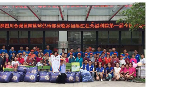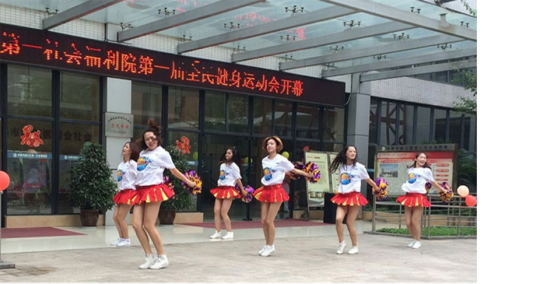2015年6月25日,四川传媒学院艺术体育部学生与CBA四川金强男子篮球俱乐部一起,作为四川金强篮球俱乐部啦啦队走进社会福利院参加运动会的表演。伴随着激情四射的音乐,同学们青春洋溢的演出,台下的老人还有社区的志愿者都拍手叫好同学们精彩的演出,为社区福利院运动会的开幕式添加了许多光彩。公益活动和慈善活动是中国优良传统的延续,是构建社会主义和谐社会的内在要求,积极参加各类公益活动,体现了艺术体育部全体师生助人为乐的高贵品质和关心公益事业、勇于承担社会责任、为社会无私奉献的精神风貌。