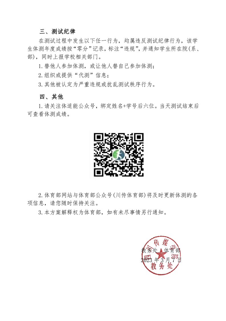 四川传媒学院2022年大学生体质健康测试 实施方案