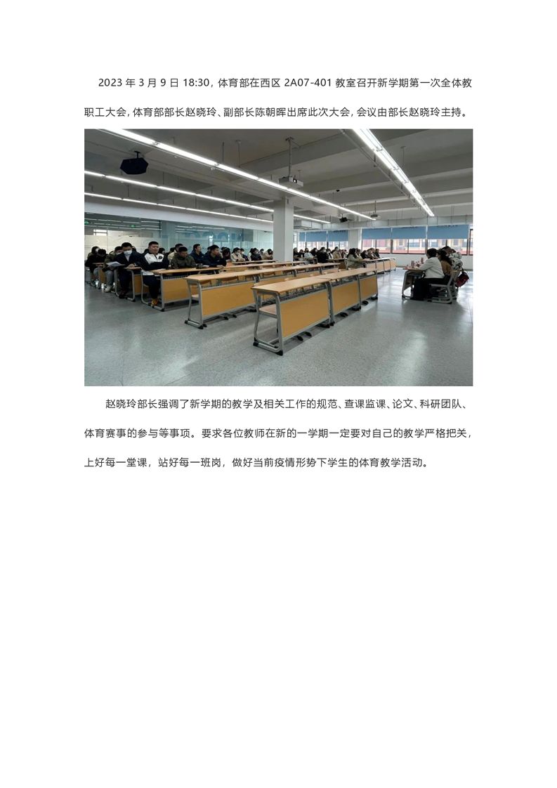体育部2022-2023学年第二学期第一次全体教职工大会