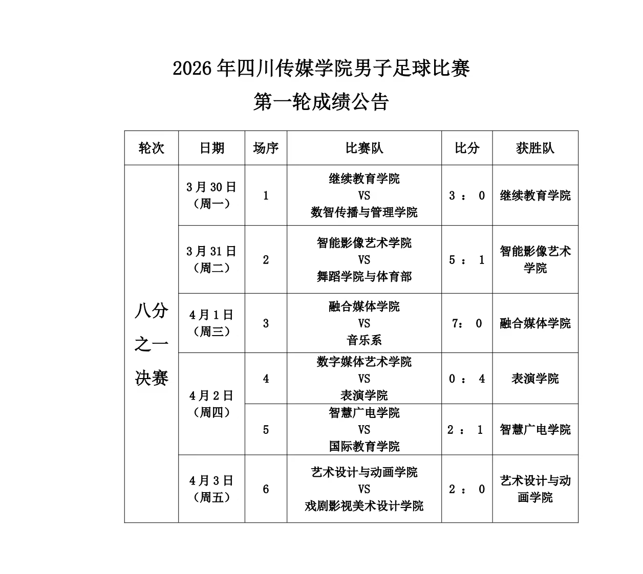 四月体育月 绿茵绽风采——2026年四川传媒学院男子足球赛首轮激战收官 后续赛程重磅开启