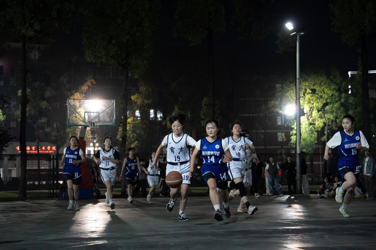 A组的首场对决,在数智传播与管理学院与舞蹈学院之间展开。两支队伍实力相当、互不相让,比赛从开场便陷入胶着。舞蹈学院凭借灵活的跑位与精准的中投多次发起冲击,数智传播与管理学院则以严密的防守和顽强的反击牢牢咬住比分。常规时间内,双方比分交替上升,始终未能拉开差距,最终以平局进入加时赛。